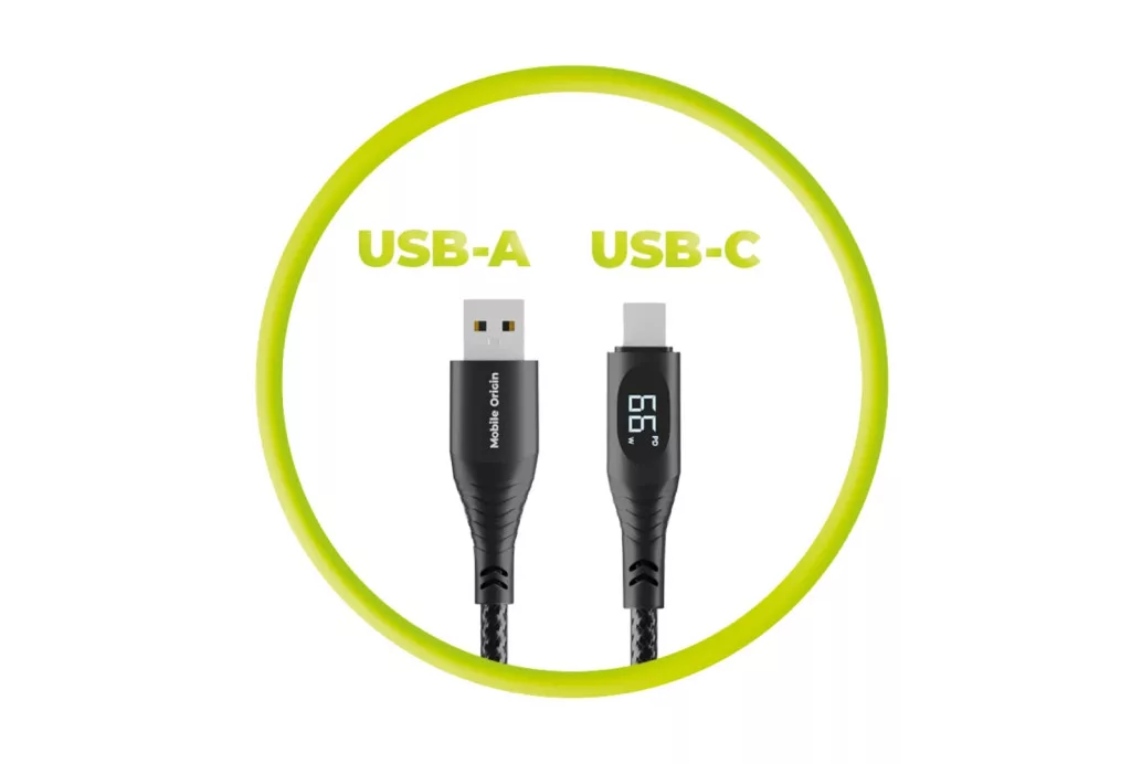 Adatkábel - 1,5M - USB-A - USB-C - szőtt - fekete - MobileOrigin