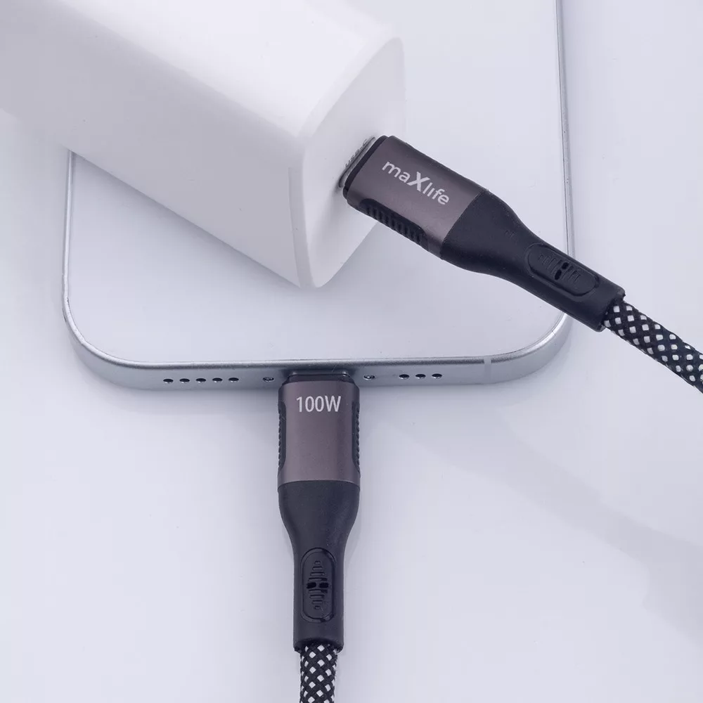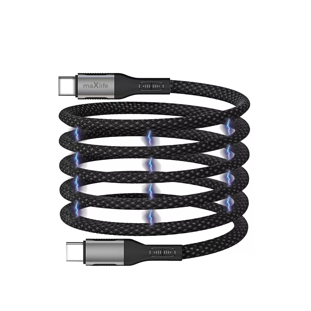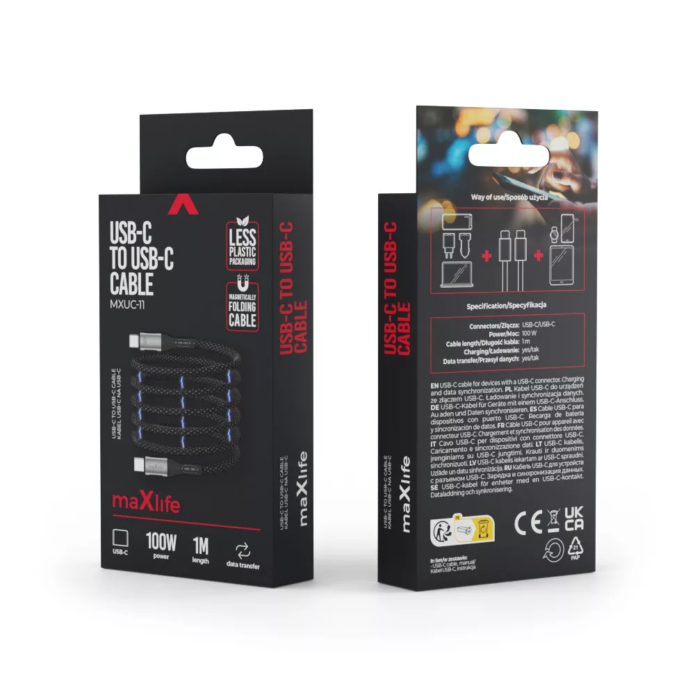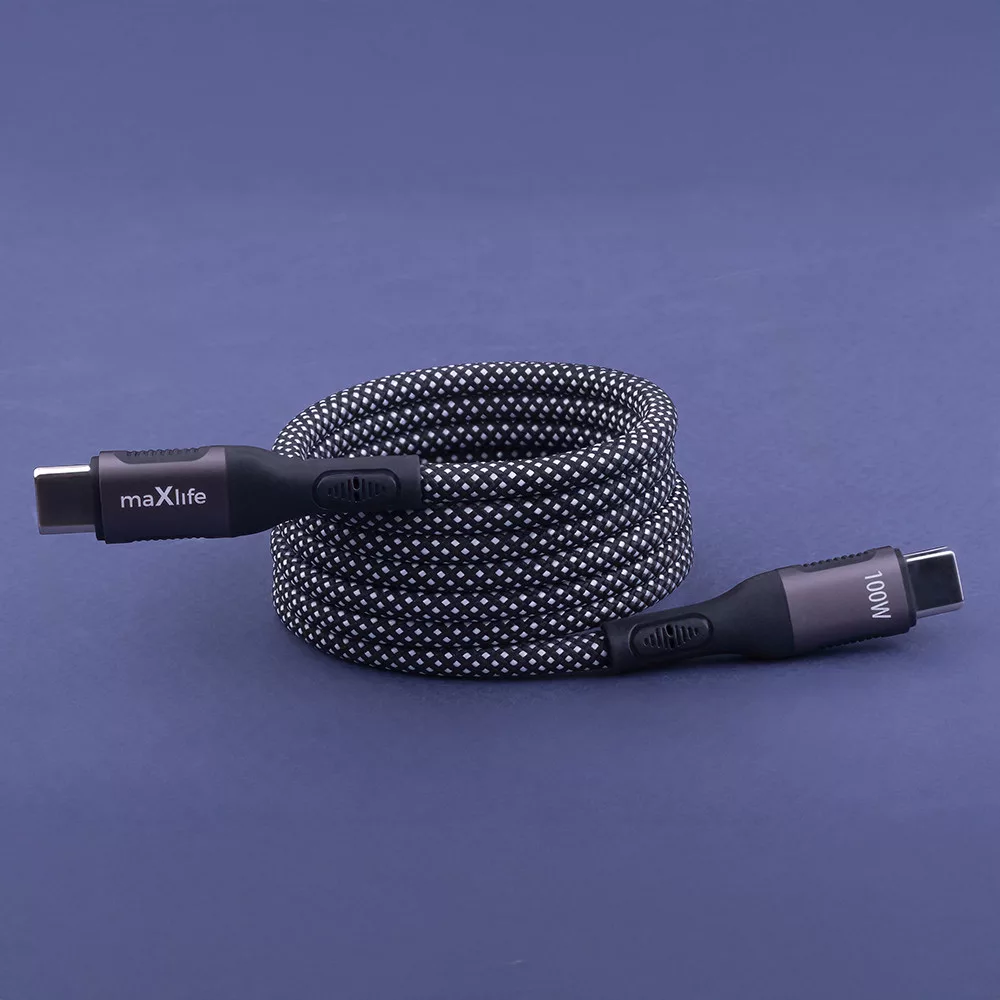 Adatkábel - 1M - USB-C - USB-C - szőtt - fekete - 100W Mágneses összehúzás