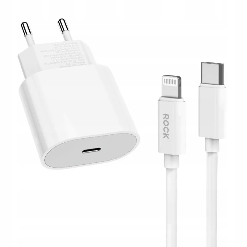 Hálózati töltő - 20W - USB-C + Lightning - fehér - Rock T18+P8