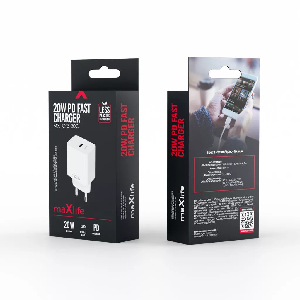 Hálózati adapter - 20W - USB-C - fehér - Maxlife MXTC-13-20C
