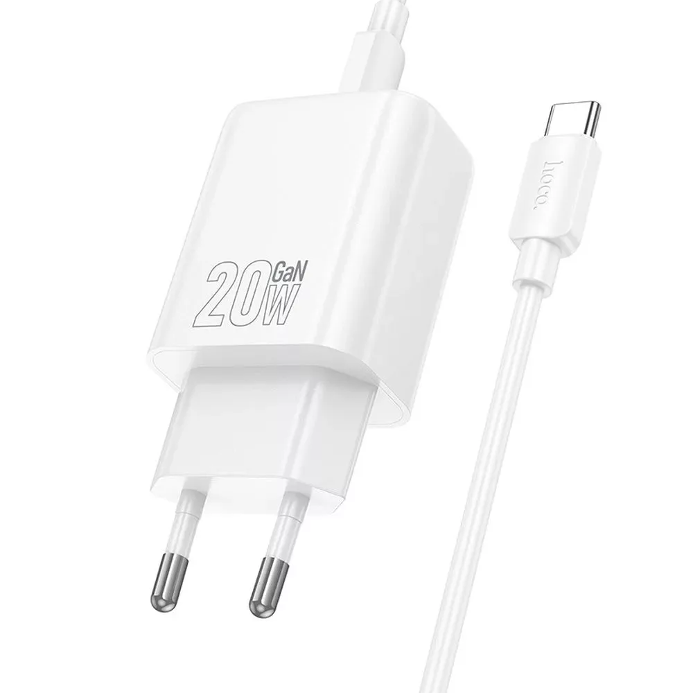 Hálózati töltő - 20W - USB-C + Lightning  - fehér - Hoco