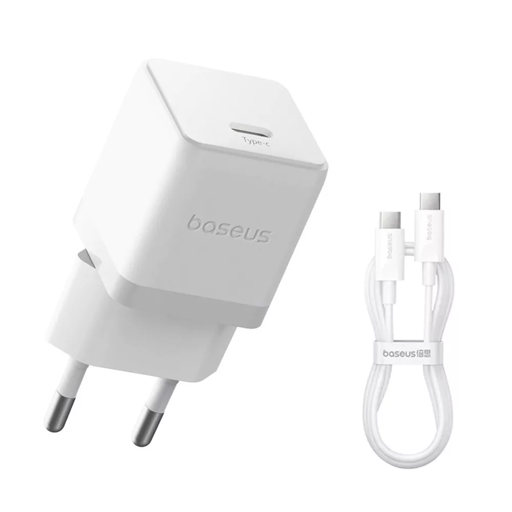 Hálózati töltő - 20W - USB-C + Type-c - fehér - Baseus
