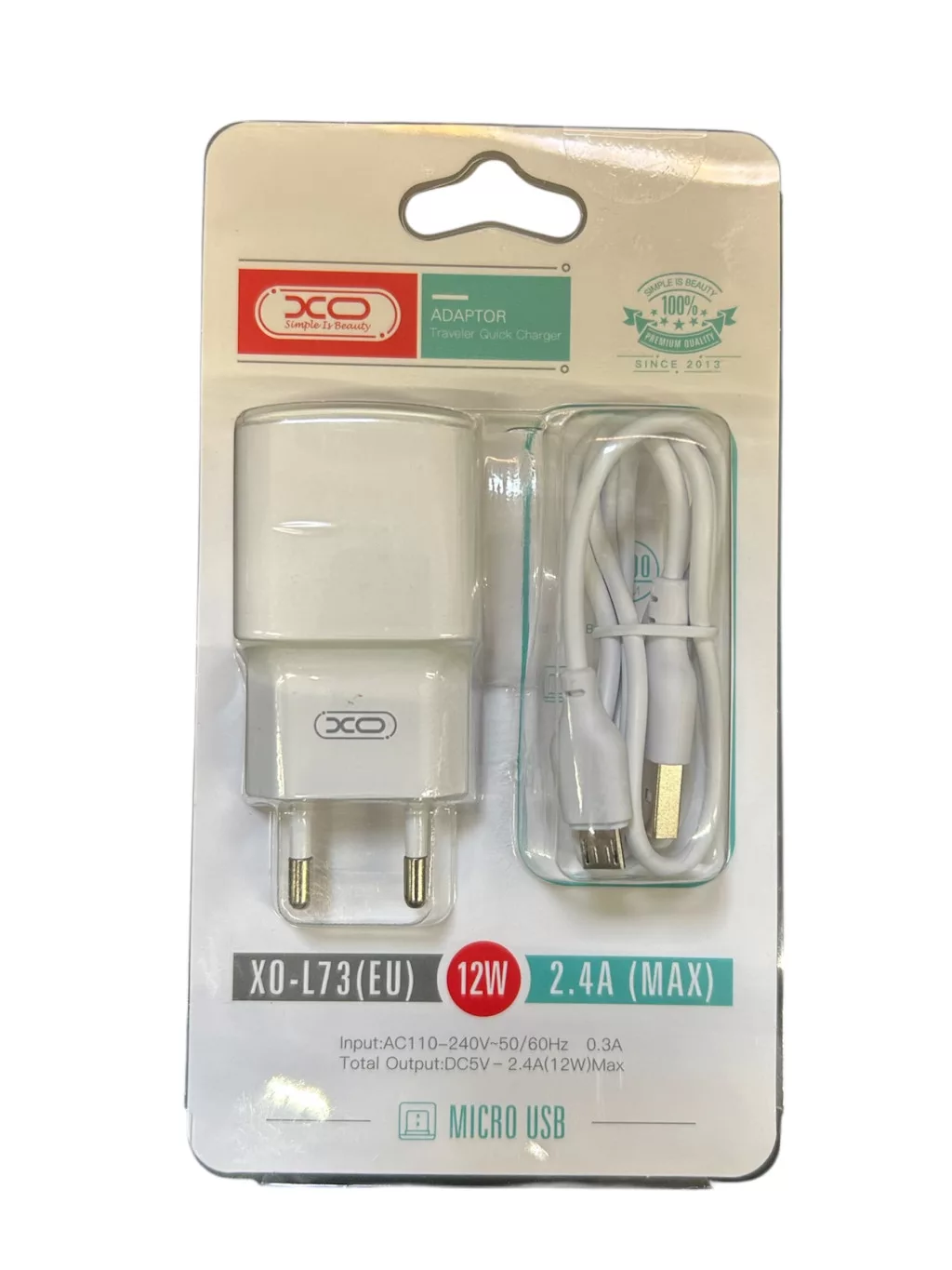 Hálózati töltő - 12W - USB-A + micro USB - fehér - XO L73