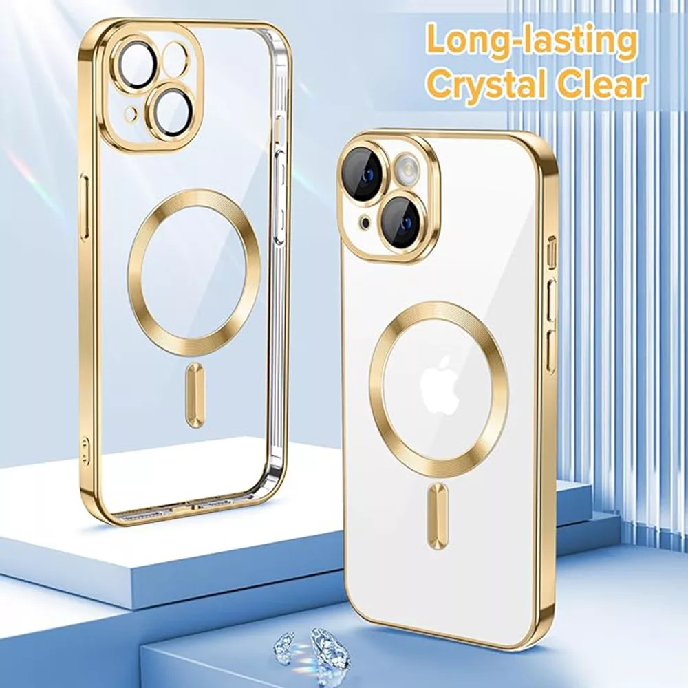 iPhone14 - Hátlap tok MagSafe - arany - Techsuit Luxury Crystal