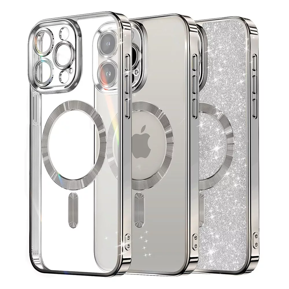 iPhone14 Pro - Hátlap tok MagSafe - ezüst - Techsuit Luxury Glitter