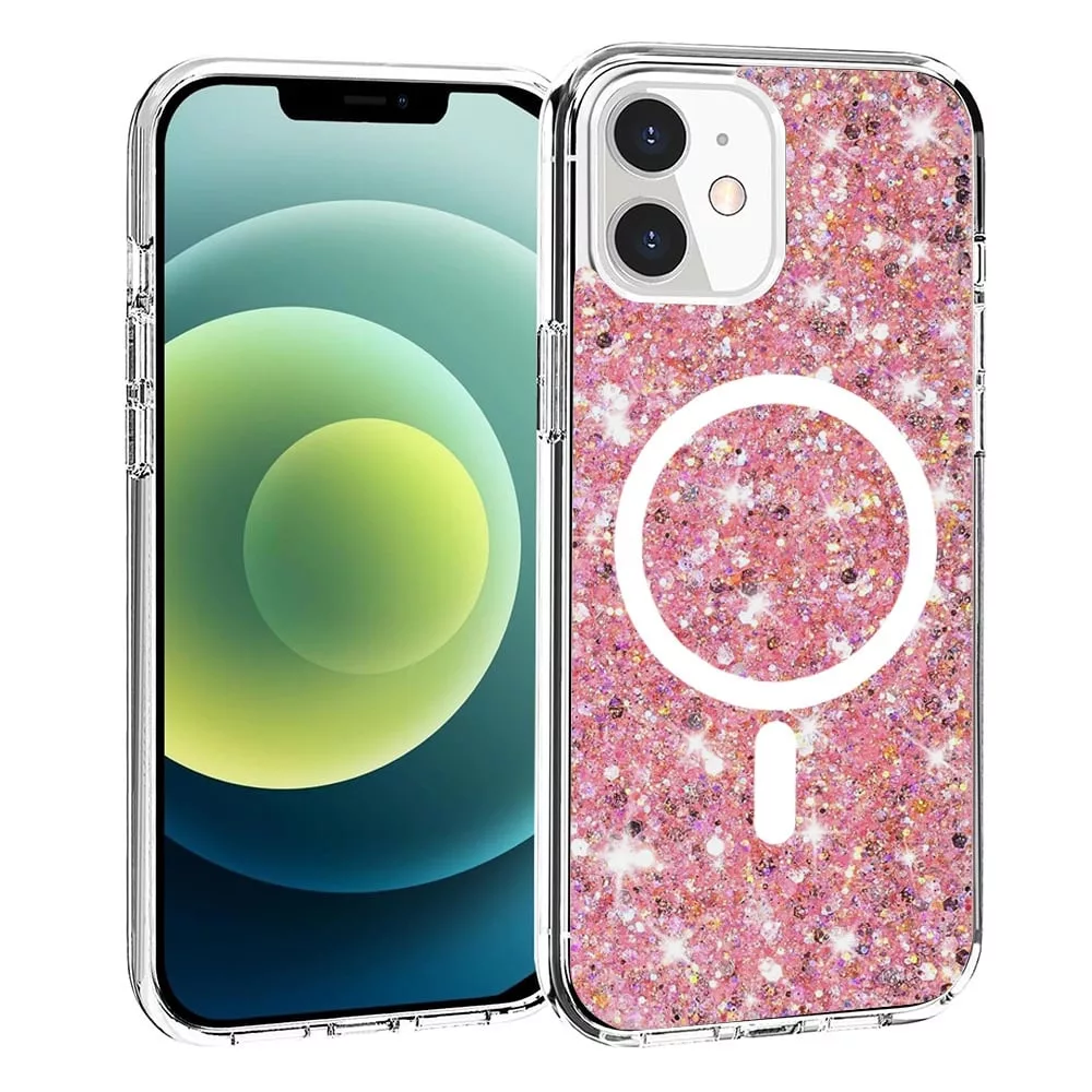 iPhone12 / 12 Pro - Hátlap tok MagSafe - rózsaszín - csillámos - Techsuit