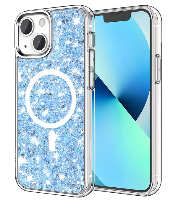 iPhone13 - Hátlap tok MagSafe - kék - csillámos - Techsuit Sparkly Glitter