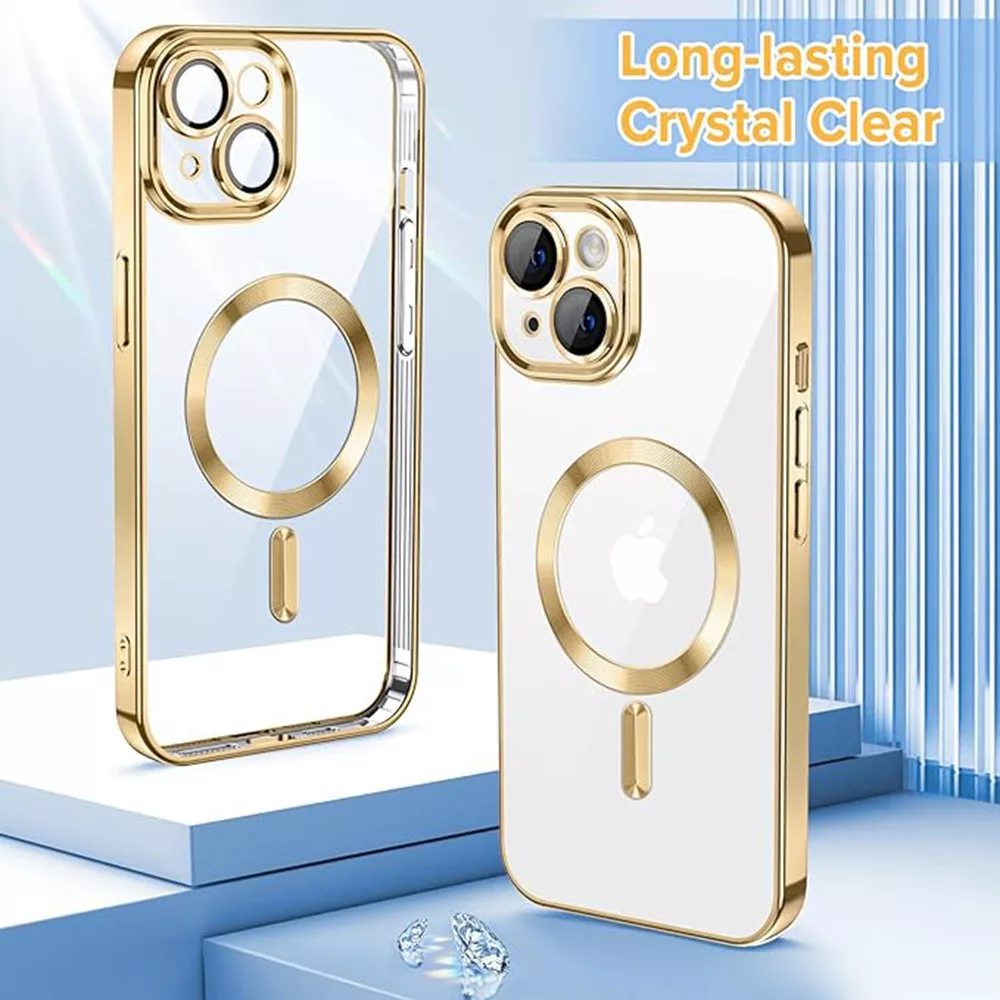 iPhone 13 - Hátlap tok MagSafe - átlátszó-arany - Luxury Crystal MagSafe