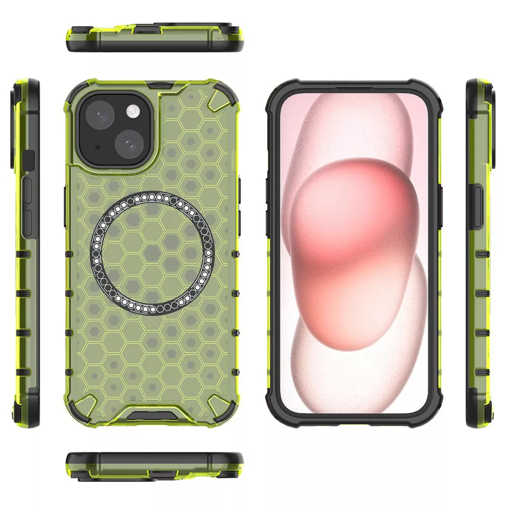 iPhone14 - Hátlap tok MagSafe - zöld - Techsuit HoneyComb Shield