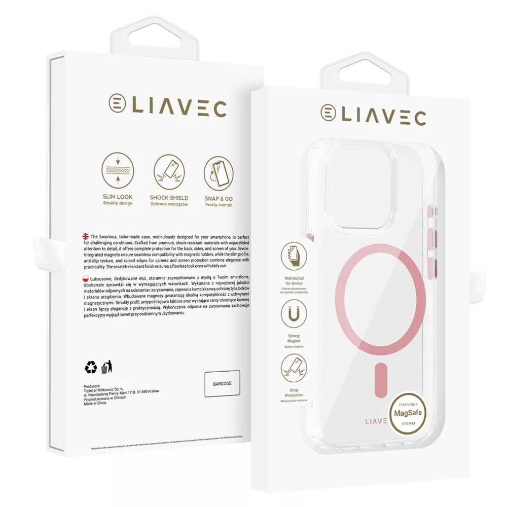 iPhone14 Pro - Hátlap tok MagSafe - átlátszó / pink - Liavec Glossy