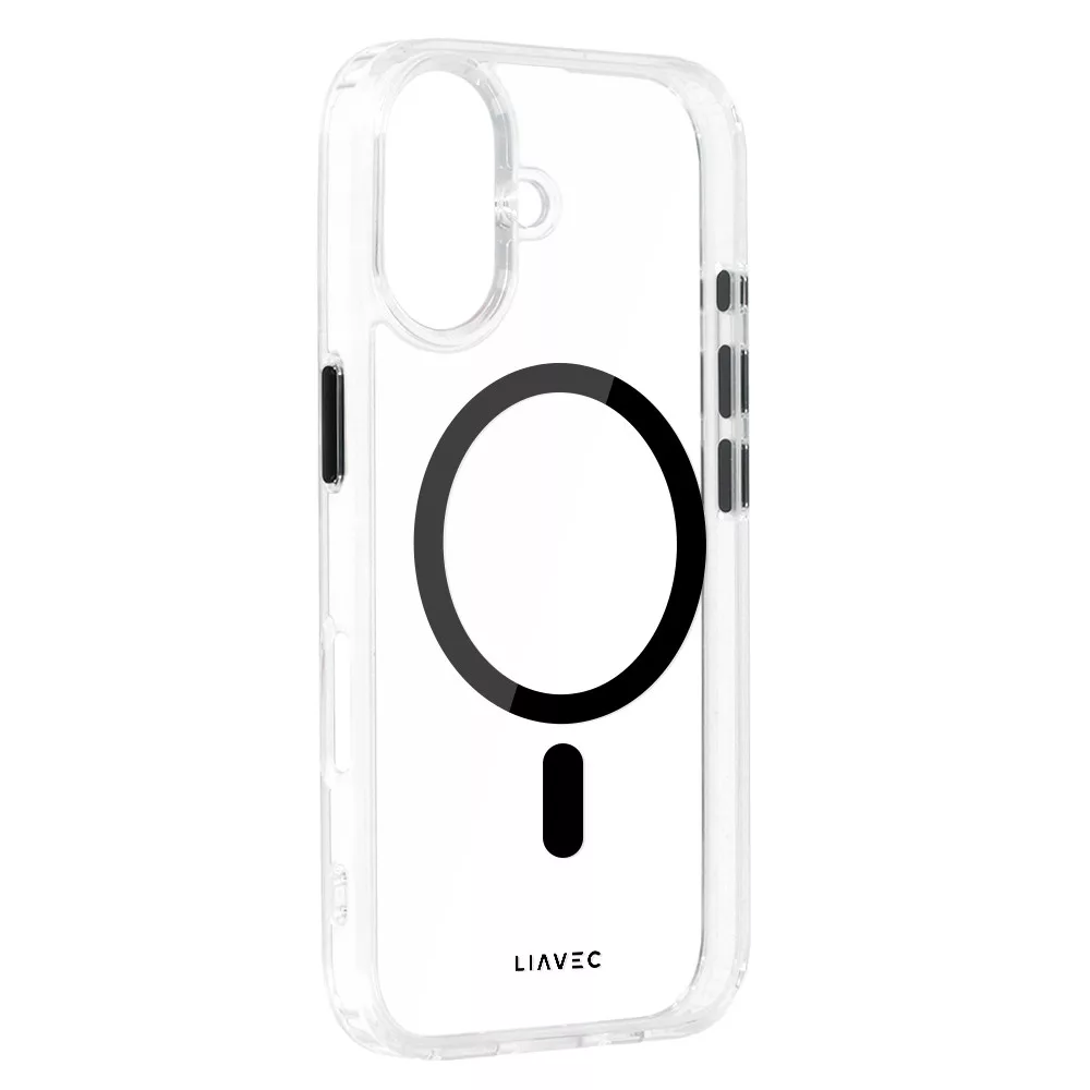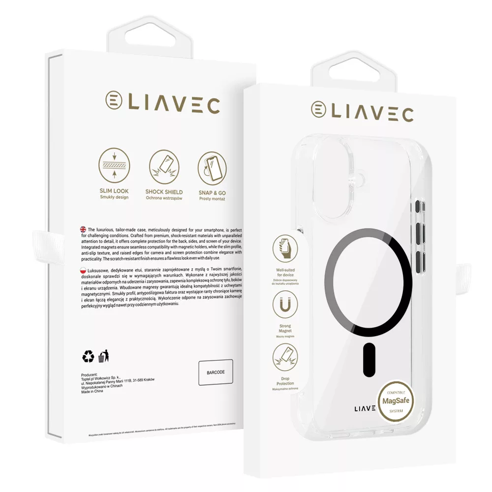 iPhone16 - Hátlap tok MagSafe - átlátszó / fekete - Liavec Glossy