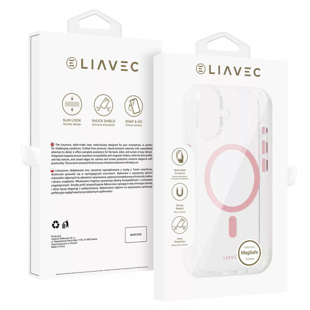 iPhone16 - Hátlap tok MagSafe - átlátszó / pink - Liavec Glossy