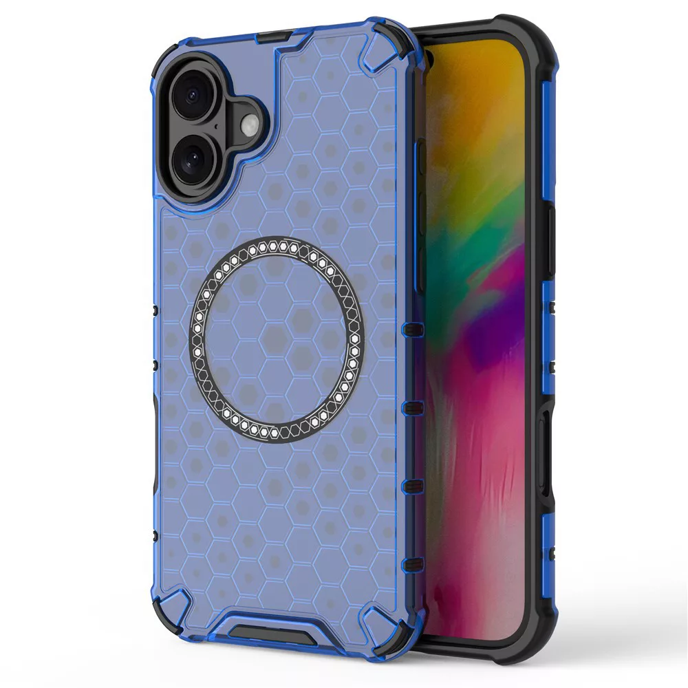 iPhone16 - Hátlap tok MagSafe - kék - Techsuit HoneyComb Shield