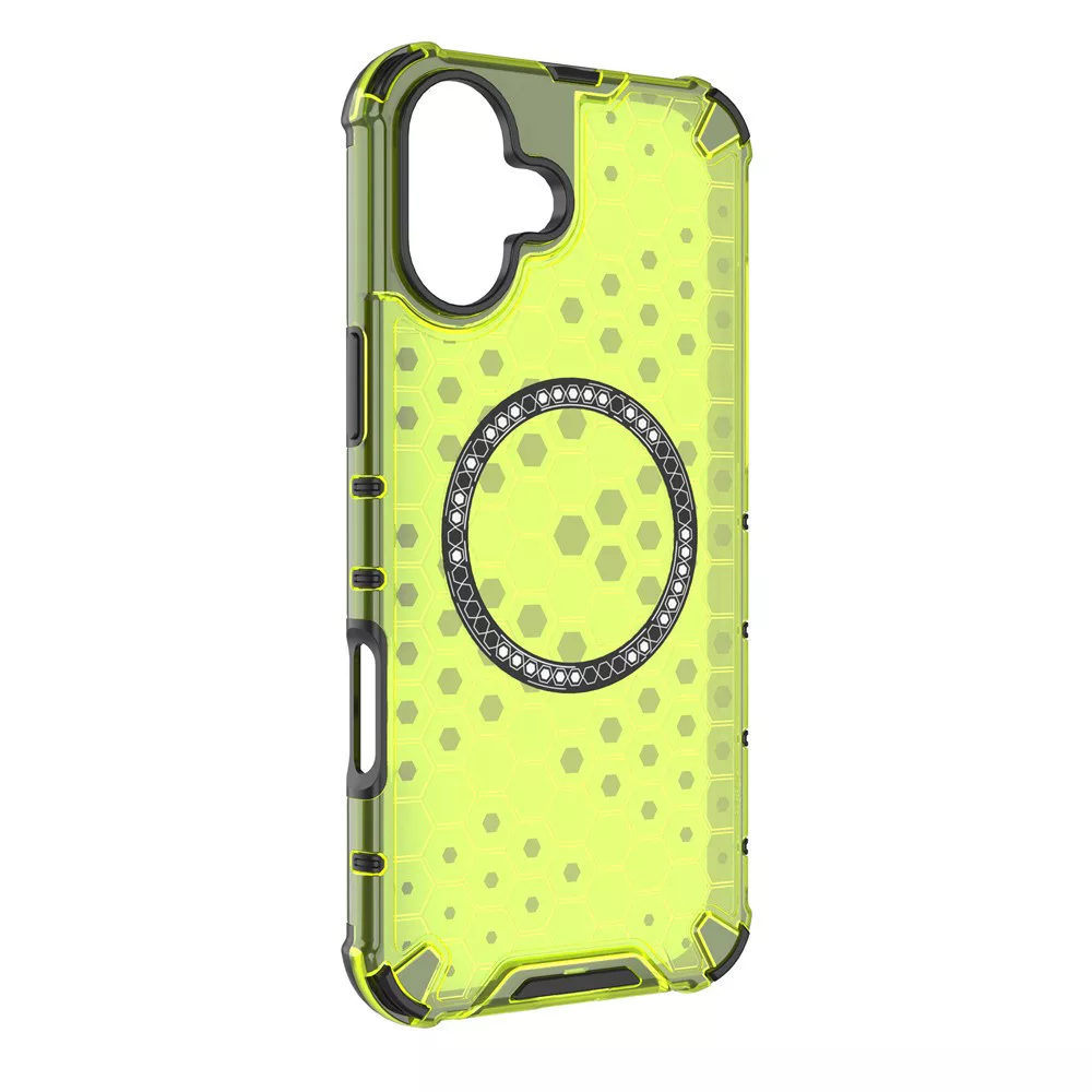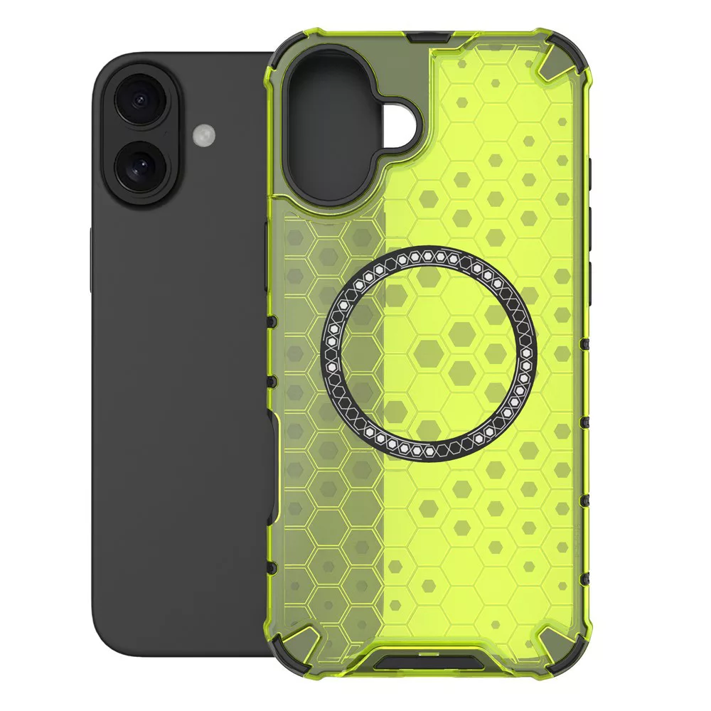 iPhone16 - Hátlap tok MagSafe - zöld - HoneyComb Shield - Techsuit