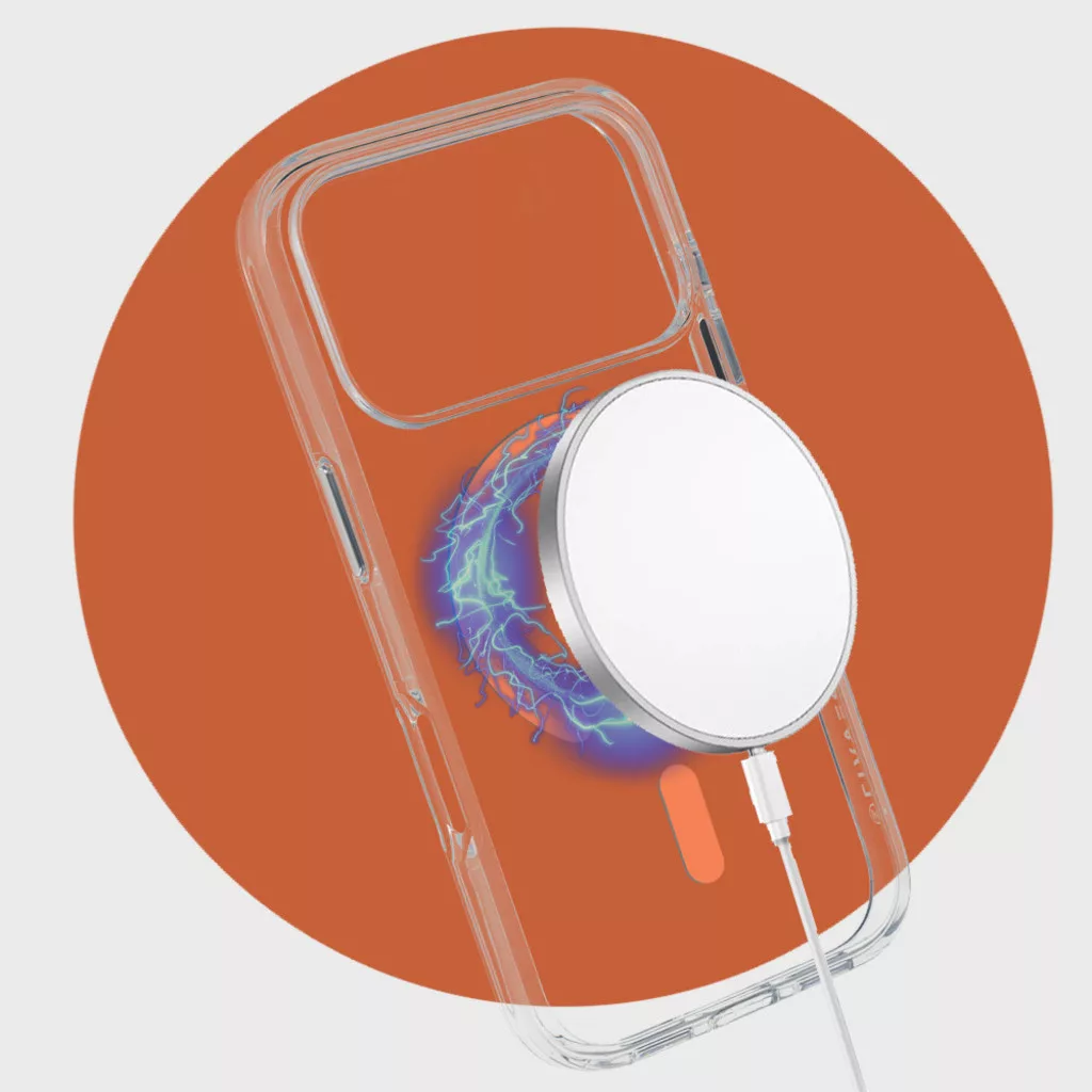 iPhone17 Pro Max - Hátlap tok MagSafe - átlátszó / narancs- Liavec Pure