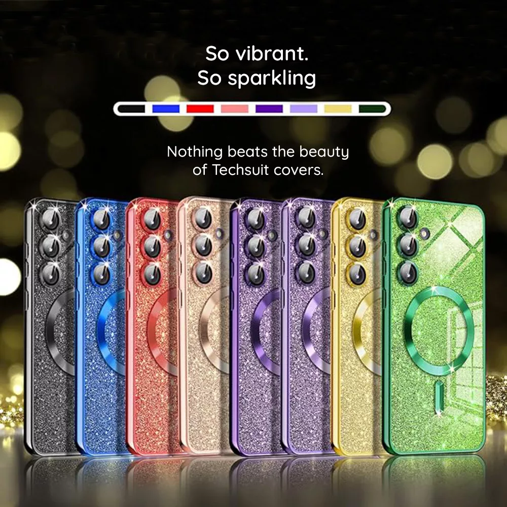 iPhone15 - Hátlap tok MagSafe - ezüst - csillámos - Techsuit Luxury Glitter