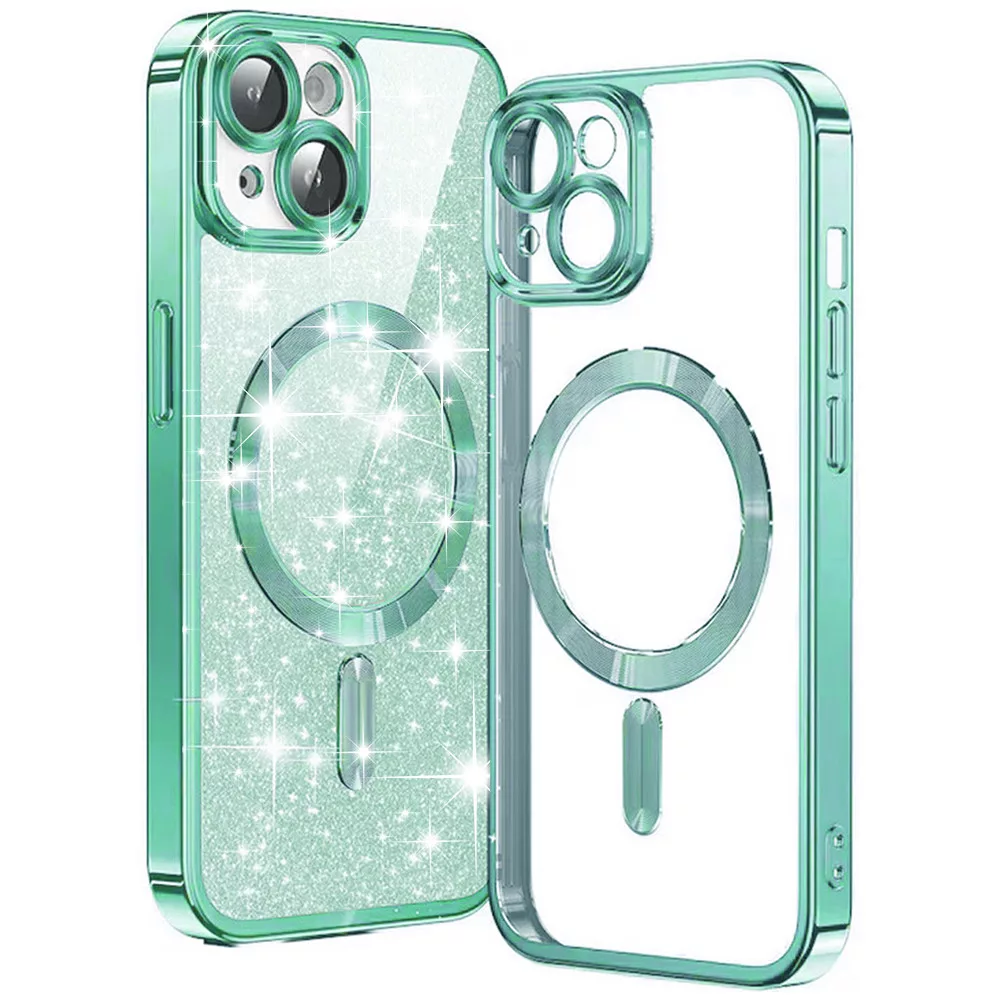 iPhone15 - Hátlap tok MagSafe - világos zöld - csillámos - Techsuit Luxury