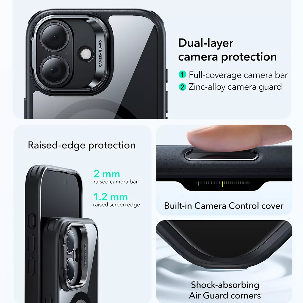ESR - Classic Hybrid HaloLock Kickstand tok - iPhone 17 - Clear Black (fekete)